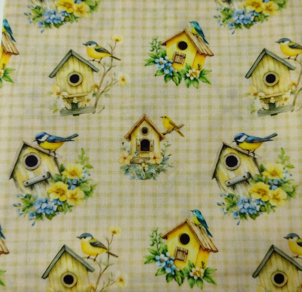Tecido Tricoline DIGITAL Casinha de Pássaros amamrelo 0,50cm x 1,50cm