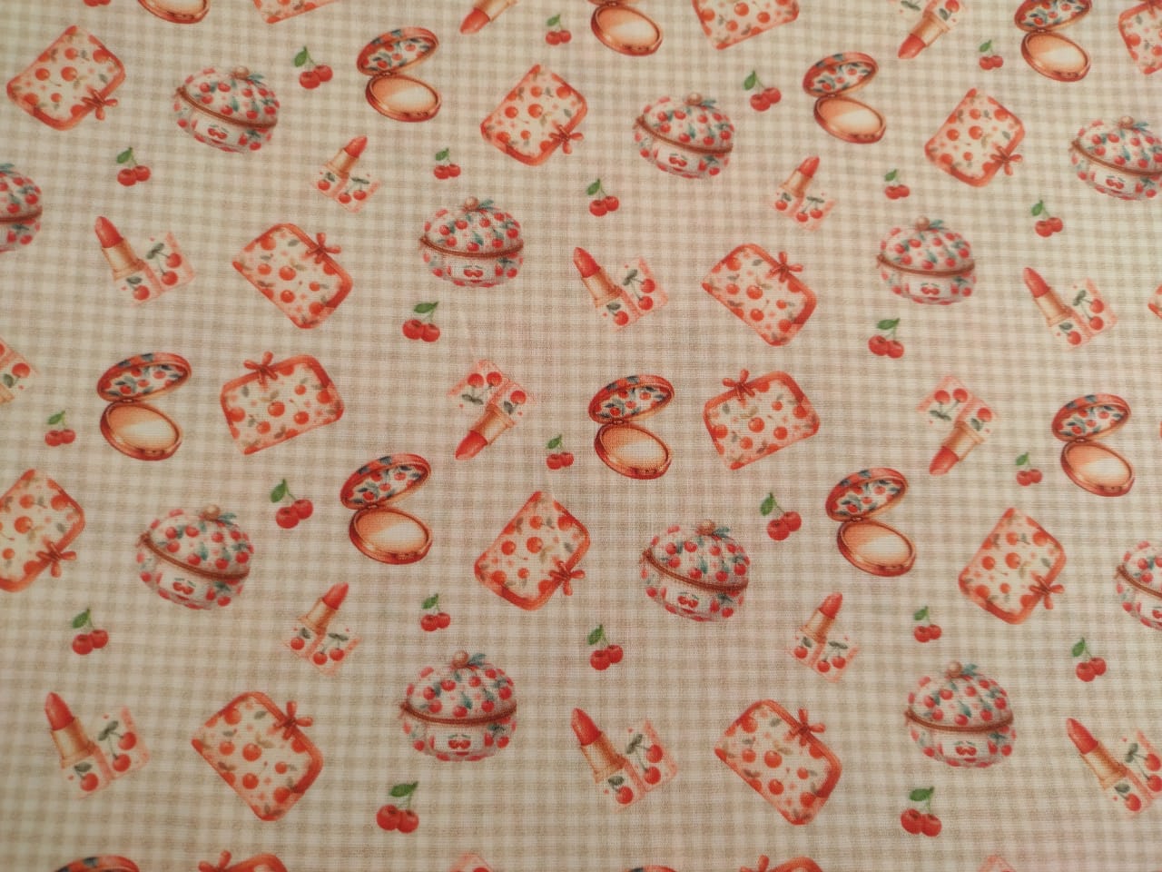 Tecido Tricoline DIGITAL Maquiagem Cereja 0,50cm x 1,50 cm